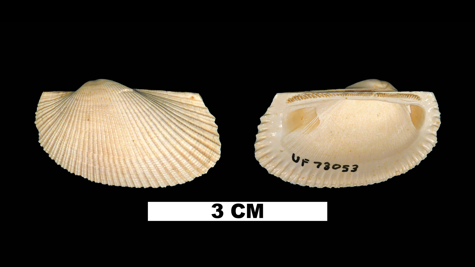 From Dall (1898, pp. 637, 638): “Oligocene of the Ballast Point silex beds, Tampa Bay, of the lower bed at Alum Bluff, and of the Chipola marl, Chipola River, Florida. Shell of moderate size, long, inflated, with rather low, mesially compressed, prosogyrate beaks; left valve with about forty-three deeply channelled, flat-topped ribs with fine, regular, concentric beading, except on the posterior slope, where the ribs are lower, flatter, and obsoletely channelled; near the margin some of the ribs have a second set of finer grooves; hinge-line straight, anterior end descending vertically, then obliquely rounded into the base, which is nearly parallel with the hinge-line; the posterior end descends more obliquely and the basal angle is prolonged a little and rounded; the interspaces between the ribs in both valves are very narrow, and on the right valve the beading is less conspicuous; the cardinal area is somewhat concave, flattish, with three or four concentric grooves in lozenge form; teeth of the hinge similar, numerous, not interrupted, short, vertical, the distal teeth a little longer and more oblique; margin of the valves fluted, the right valve slightly smaller than the other. Lon. 50, alt. 25, diam. 20 mm. This species has the appearance of being the Oligocene ancestor of the Miocene A. lienosa, from which it differs by its smaller size, closer and rather narrower ribbing.”
