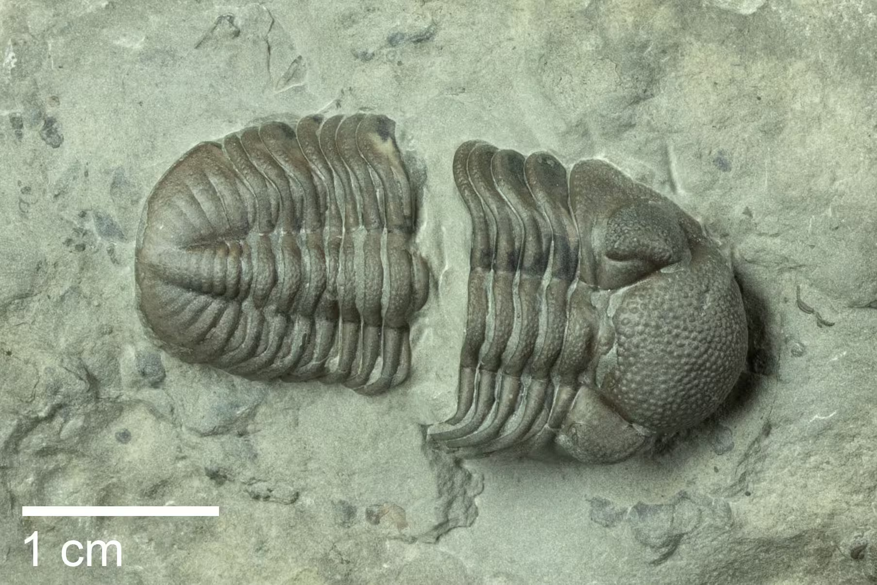 From Wilson (2014, p. 204): “Generally resembling Viaphacops cristatus … but marked by the absence of genal and axial spines, and the simple annulations of the pygidium. Formerly known as Phacops rana, this is perhaps the most common trilobite in the Middle Devonian Hamilton Group.” Maximum size 100 mm.